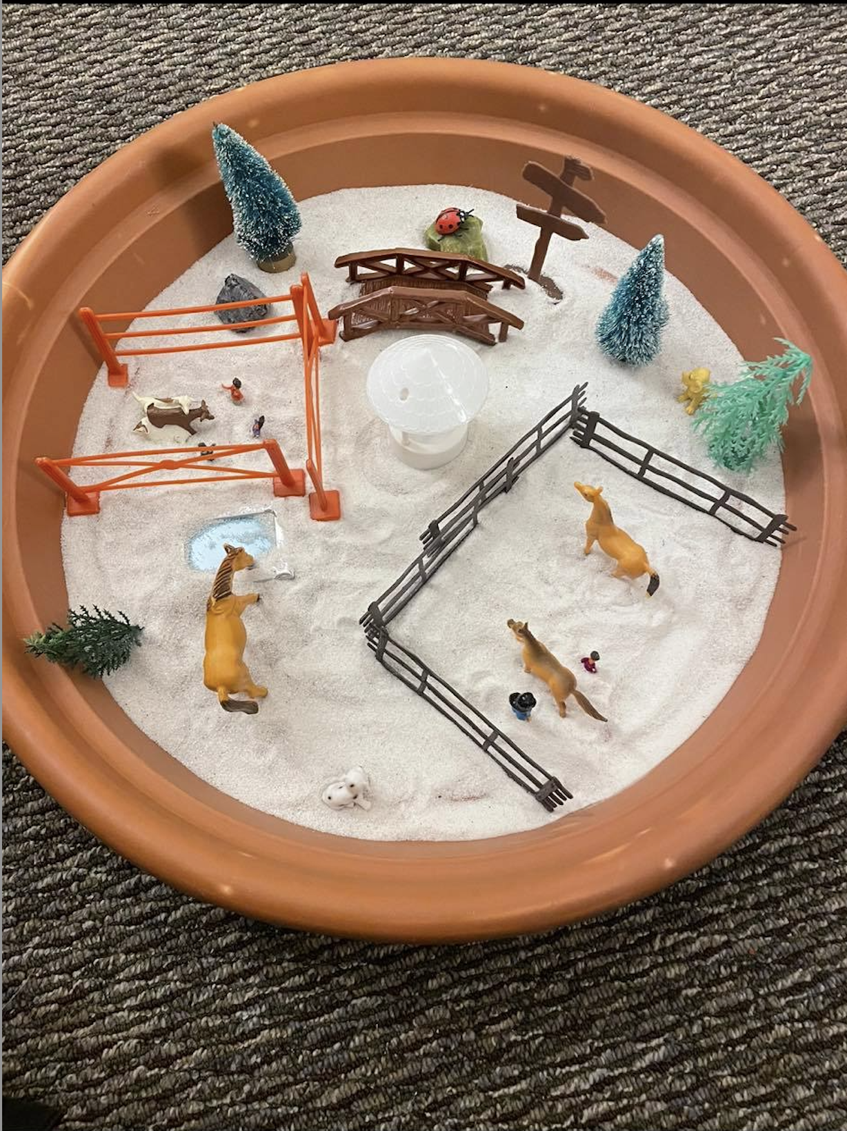 Play therapists pay special attention to the child's choice of play objects, the types of play the child engages in, and well as the style of play. In addition, the therapist and child set up a trusting relationship between them that has therapeutic value. Here at Finding Harmony, we’ve been known to add goats, horses, and therapy dogs to the mix!